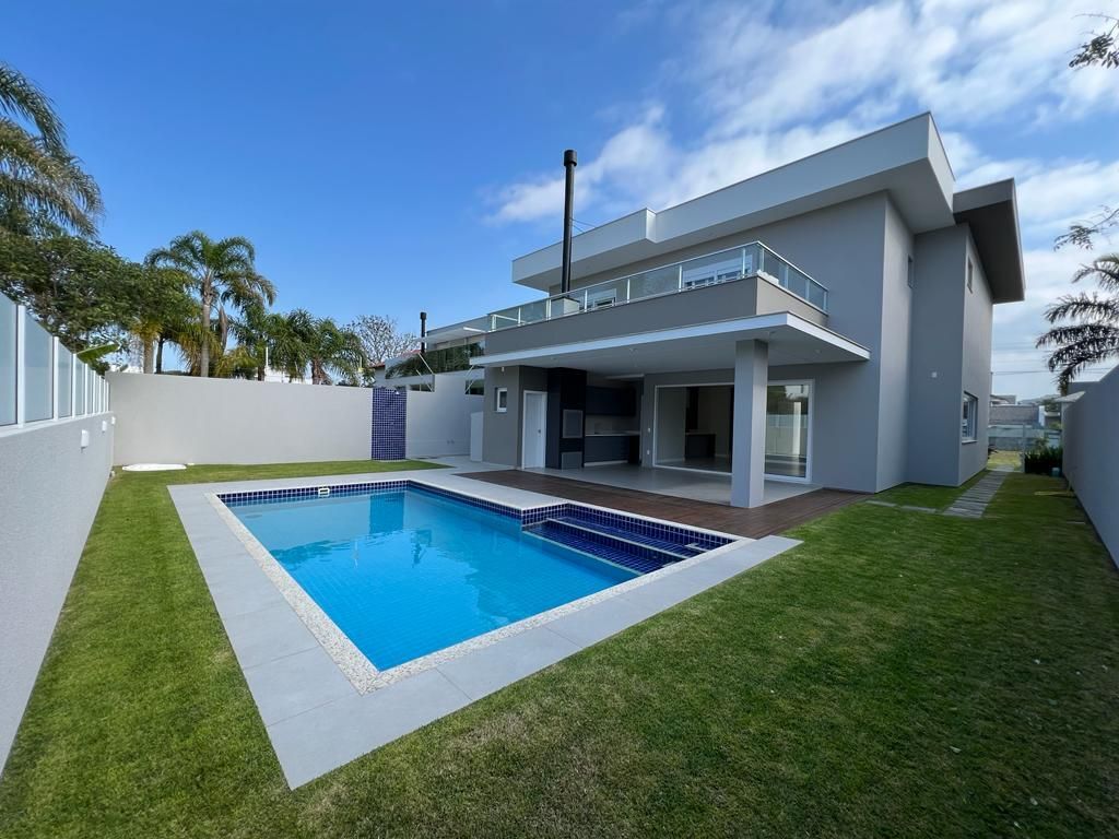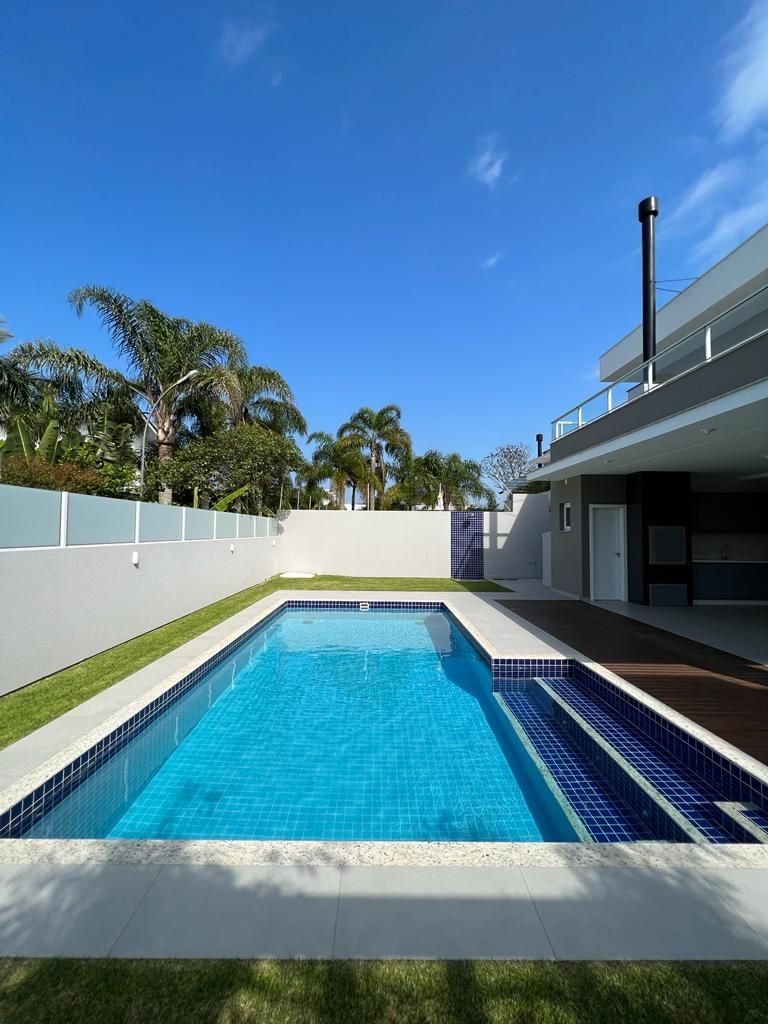 Casa nova a venda em Jurerê Internacional em Florianópolis/SC.* Área privativa 360 m2* Terreno 450 m2* 5 suítes sendo 1 térrea, suíte máster com closet e banheira de hidromassagem* Escritório * Cozinha integrada com Sala de Estar / Jantar * 2 vagas de garagem* Ar condicionado em todos os ambientes* Rebaixo de gesso* Persianas automatizadas* Piscina com espera para aquecimento