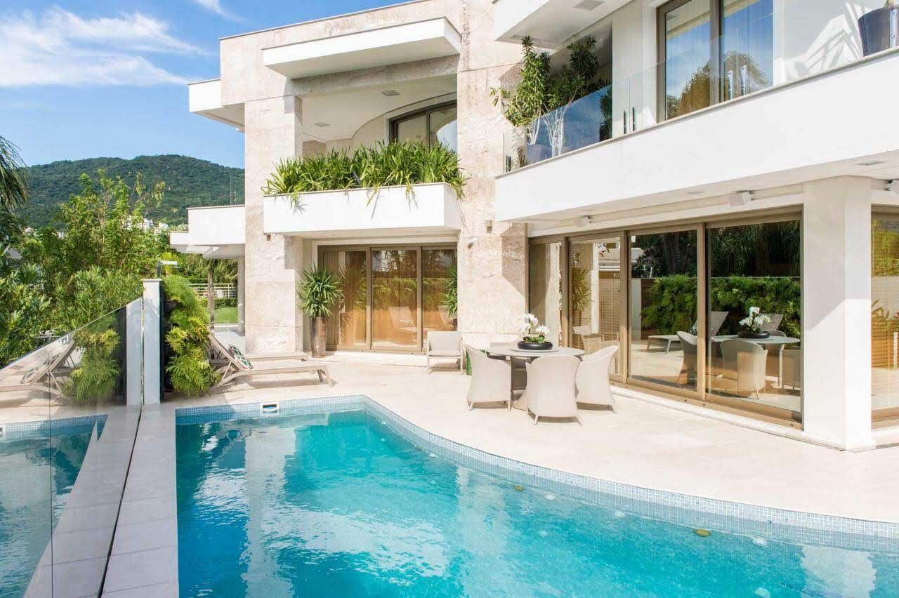 Casa em condomínio fechado de luxo no bairro Córrego Grande em Florianópolis / SCO ponto principal do projeto desta casa é a integração da Sala de Estar/Jantar, Espaço Goumert e Cozinha. Abrindo as aberturas, a piscina também se integra completamente aos ambientes. Possui 05 suítes, sendo 04 no andar superior totalmente mobiliadas e decoradas.A escada é em mármore Travertino Bruto Romano, móveis Jader Almeida, entre outros detalhes que fazem deste um imóvel único e de muito luxo. No subsolo possui uma academia completa e sala de televisão. Imóvel - Área privativa de 532 m² - 05 suítes- 02 vagas de garagem cobertas- 08 banheiros Condomínio - Campo de futebol gramado- Quadra poliesportiva- Câmera de Segurança- Portaria 24 horas- Cerca elétrica