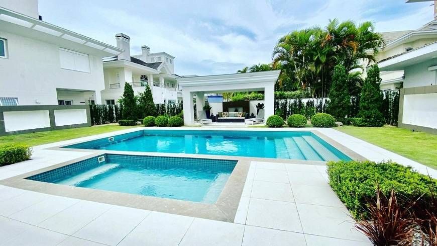 Casa clássica em Jurerê Internacional Casa mobiliada, decorada e equipada a poucos passos da praia em Jurerê Internacional. Destaque para a área de lazer com piscina, espaço gourmet e spa aquecido juntamente com o jardim, criando uma grande área agradável para receber sua família e amigos.Imóvel 758 m² área privativa821 m² de terrenoÁrea de lazer com piscina, espaço gourmet e spa aquecido5 suítes6 vagas de garagem