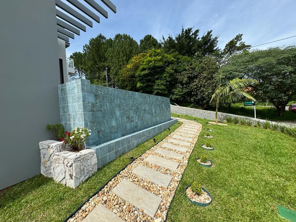 Luxo, requinte e privacidade na Pedra Branca / Palhoça. Em um lote de esquina e com vista para a área de preservação permanente, esta casa se destaca pelo altíssimo padrão de acabamento e por um layout onde prevalece a integração da parte social com a piscina. Imóvel semi mobiliado, cozinha e banheiros com móveis, automatização na piscina, banheira, iluminação, persianas e portão da garagem. Alexias em 5 ambientes, proporcionando a opção de som ambiente e toda a casa. Piscina com borda infinita e aquecimento através de placas solares de PVC com trocador de calor.Imóvel 270 m² área privativa450 m² de terrenoSala de estar/jantar integrada com Cozinha e Churrasqueira3 suítes, sendo a máster com closet e banheiraPiscina com borda infinita3 vagas de garagem