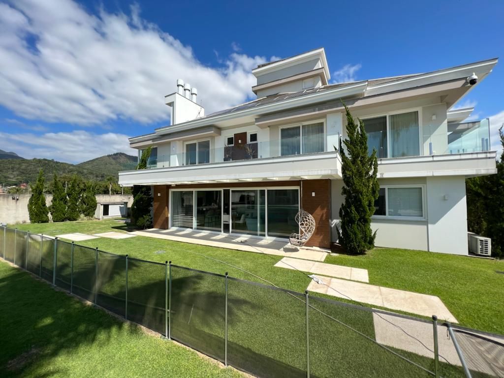 Requinte e sofisticação é o que define esta mansão em Santo Amaro da Imperatriz/SC. Com um projeto super moderno e utilizando elementos nobres, mobília e decoração finamente executadas. Na fachada imponente destaca-se a grande porta de madeira e a escada redonda que em todo o seu vão possui vidro para a luz natural entrar. A planta da mansão é espetacular, no andar térreo temos sala de estar / jantar, sala de cinema, lavabo, cozinha, escritório, brinquedoteca, espaço gourmet, banheiro social, dormitório de apoio, área de serviço e garagem. Além da área externa que possui jardim, pomar e uma construção já com academia montada. No andar superior temos uma sala íntima e 05 suítes sendo que 4 já estão mobiliadas. A suíte master possui lareira, dois closets é uma banheira com um visual incrível para as montanhas. E a piscina, sabe aquela citação Nadar em Dinheiro, nesta realmente você consegue. Foi plotado uma nota de 100 dólares no fundo da piscina pois o proprietário queria algo que remetesse o filme que tanto gosta, Roubo nas Alturas.Localizada no Condomínio Quinta dos Guimarães que possui apenas 100 lotes e toda a infraestrutura para seus moradores. Imóvel *530 m2 de área privativa *2000 m2 de terreno*5 suítes, sendo a master com 2 closets e banheira*Automação quanto a iluminação, splits, som *Piso aquecido em toda a casa*Aspiração central*Usina de energia fotovoltaica *Garagem para 3 carrosO condomínio fica localizado no Bairro Sul do Rio, ao pé da Serra do Tabuleiro. Possui a seguinte infraestrutura: portal de entrada com guarita; todo fechado com cerca viva; açude, deck; pista de caminhada; salão de festas; playground; estacionamento; quiosques com pia e churrasqueira.
